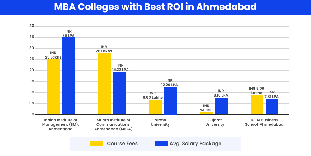 Given below is a list of the full course fee of the top 10 MBA colleges of Ahmedabad along with the average placement packages that were offered to MBA graduates during final placements.