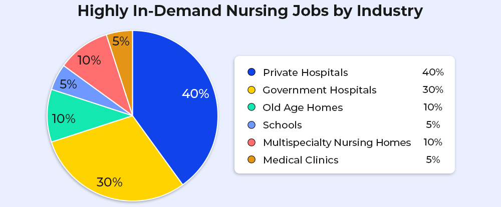 Professions like nursing are in high demand, whether it is in the commercial world, a government job, or any other field related to the healthcare industry. They have been an important part of the healthcare industry. Here are the top core industries in which the graduates of a BSc in nursing can easily enter. Let’s have a look at the following table: