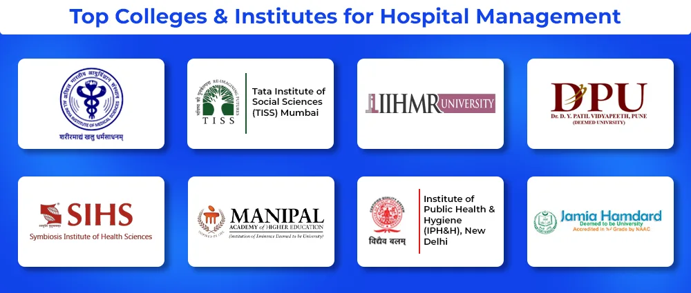 Both public sector and private sector institutions, hospitals, and higher educational institutions offer courses in various hospital management-related specialisations such as hospital administration, healthcare administration, healthcare management, and so on. What’s more, these courses are available at both the UG and PG levels and in online and offline modes, allowing for great flexibility for the learner to select a course as per their needs. The eminent institutions offering courses in hospital management and related domains have been illustrated below.