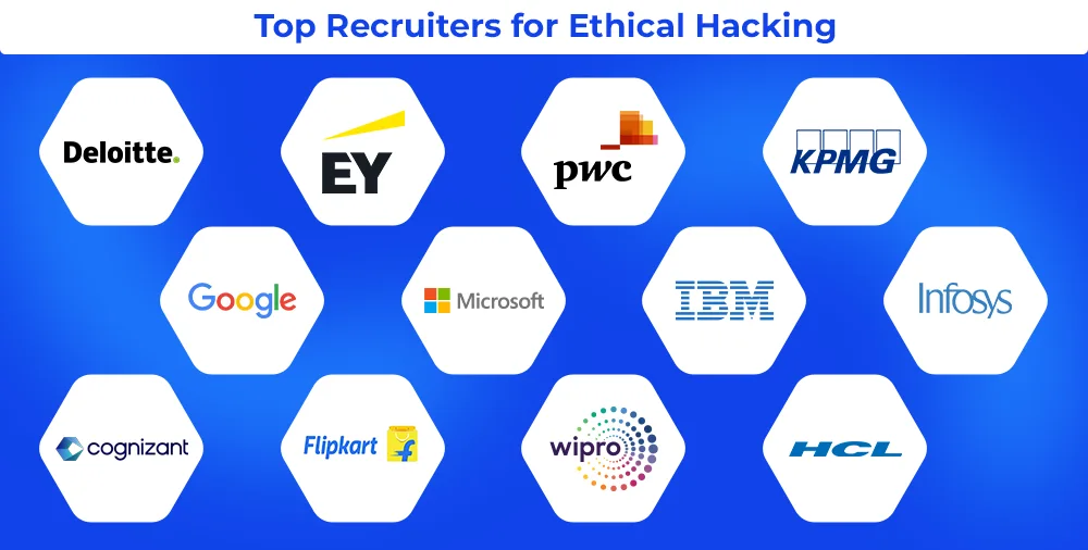 The top recruiters for ethical hackers include IT firms, cybersecurity agencies and bodies as well as IT consultancies. Some of the major firms that hire ethical hackers have been illustrated below. One can aim to seek job opportunities as ethical hackers in these firms, which provide fair compensation and scope for career growth.