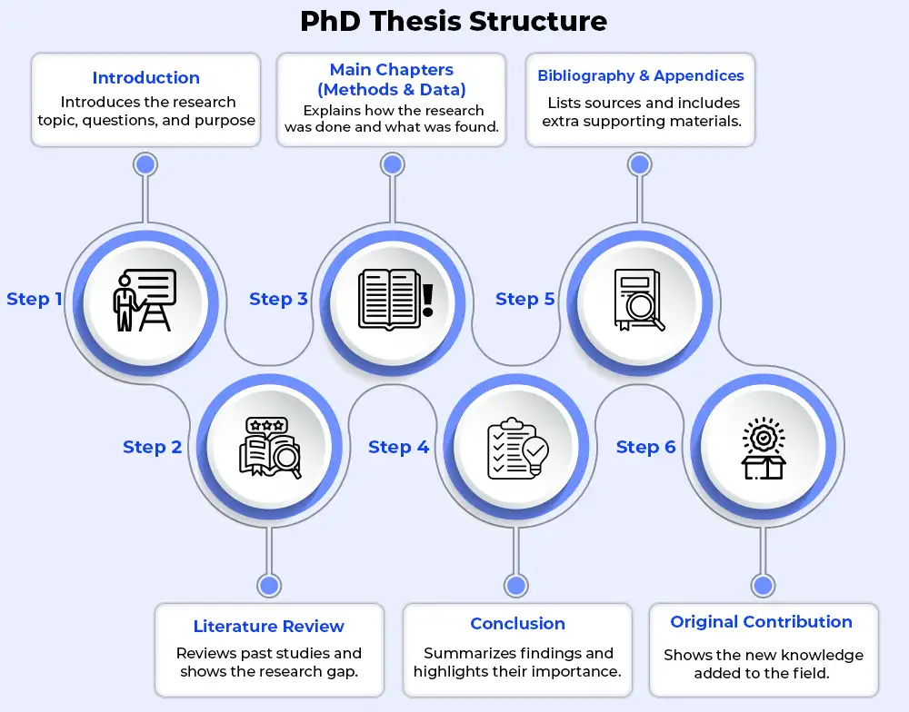 Once you finish your literature review and complete your research, the next step in your PhD journey is writing your thesis. Your thesis is the most important part of your PhD. It shows all the work you have done and what new knowledge you have added to your subject.