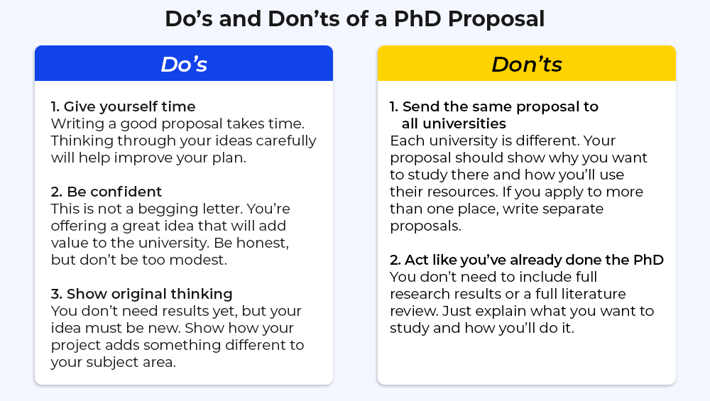 Some programs let you write your proposal after you start the PhD. This happens more in the USA and sometimes in the UK too. But in this guide, we’ll focus on how to write a good proposal as part of your PhD application.