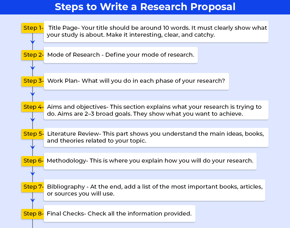 Most research proposals are between 1,500 and 2,500 words. Some universities may ask for a longer version, up to 15–20 pages. Always check the university’s guidelines.