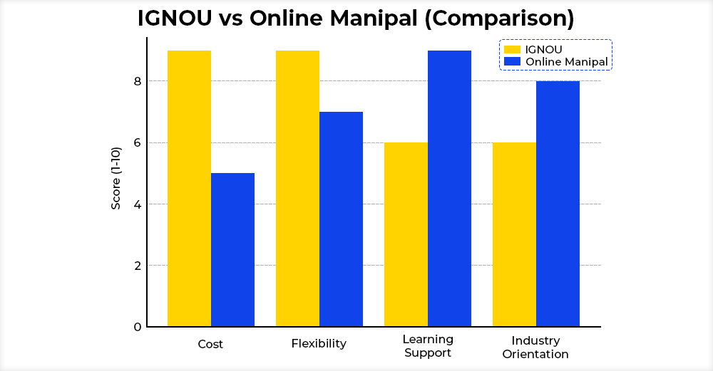 Both have their advantages. IGNOU is more affordable and ideal for those who prefer traditional distance learning. Online Manipal, on the other hand, offers a more modern, flexible, and career-oriented approach with a focus on real-world skills. Your choice will depend on factors like cost, learning style, and career goals.