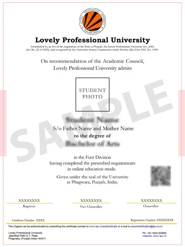 - The LPU Online degree is fully entitled by the statutory bodies and it is treated at par with other regular degrees as well.