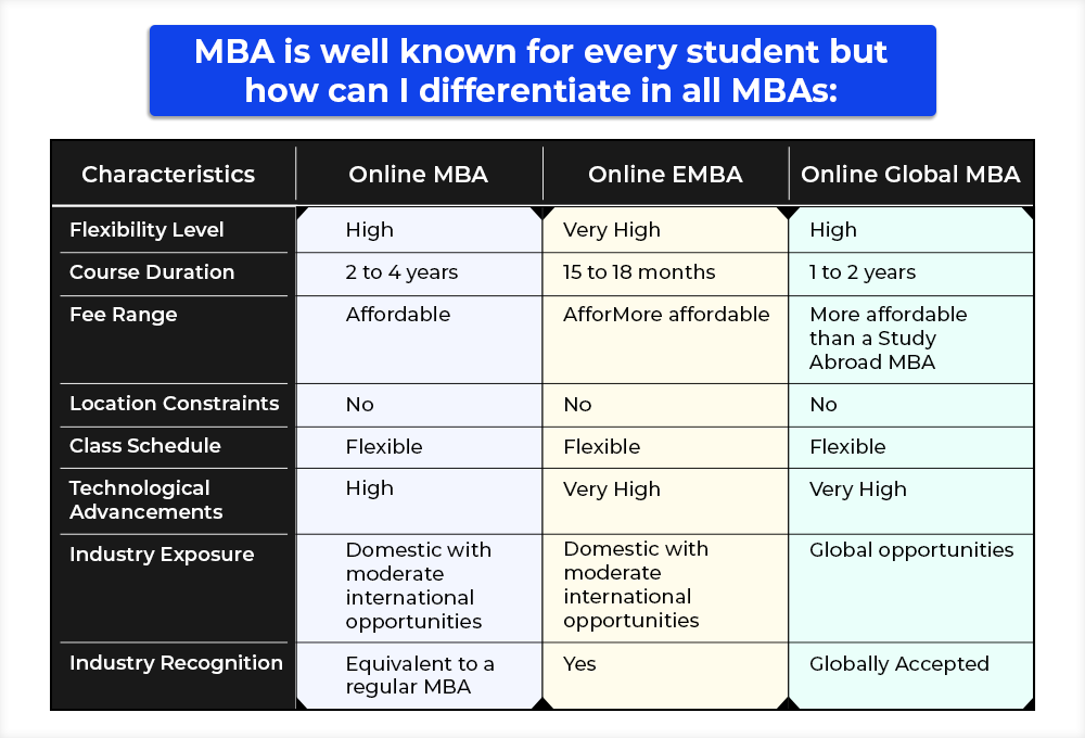 This is the game-changer. Online MBA? When you graduate, you resign, burn your savings, and hope that the market turns out to be good. Online programs? You retain your present job and salary and enhance your qualifications.