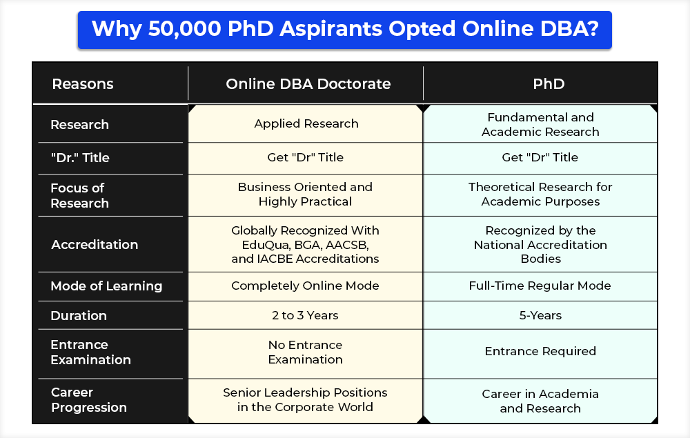 The majority of the professionals think tactically. They are interested in their role, their tasks. Online MBA/ Online DBA courses help you to be strategic. You get to know how real businesses operate, where the money comes and goes, and why CEOs can stay up all night.