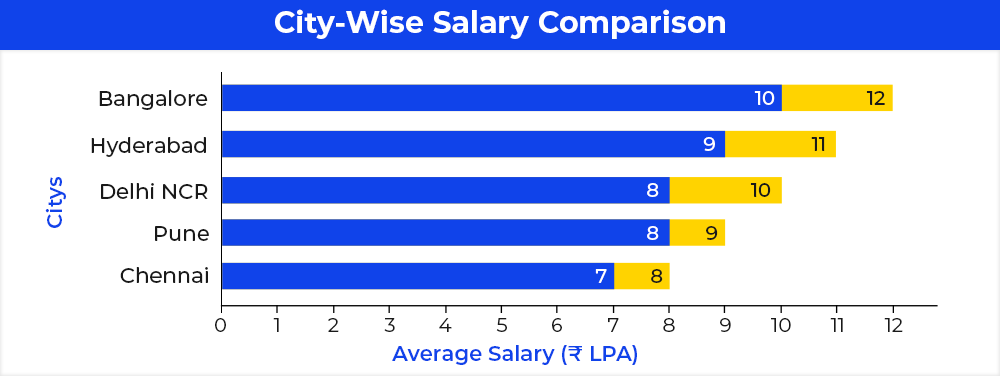 You can see Bangalore and Delhi offer higher pay, likely because cost of living is higher and companies compete more for top talent.