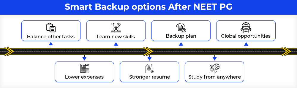 The NEET PG does not always guarantee the expected results, and it is often difficult to choose the correct career path. Nevertheless, the positive aspect is that several Digital learning solutions in the present day are not only career-relevant to the requirements of the current environment only but also high in terms of ROI. Master's online courses in healthcare, management, data science, and public health enable the aspirant to forge a robust professional profile, even though there is no instant access to the PG medical programs. The courses allow you to remain in touch with the medical field and increase employability, as well as have various career doors open as you prepare to attempt NEET PG later or pursue other options. However, in the final instance, one exam does not make your career. The combination of the right backup options and ongoing upskilling will help you to create a satisfying and future-oriented healthcare career.