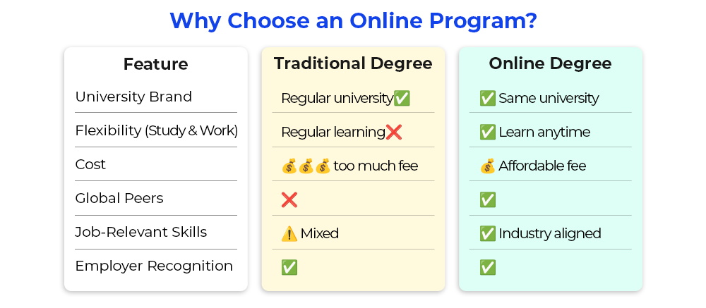 Yes, the accredited universities do grant the same degree through the flexible online programs; however, some universities may mention that it is an online program or that you attended an offline program.