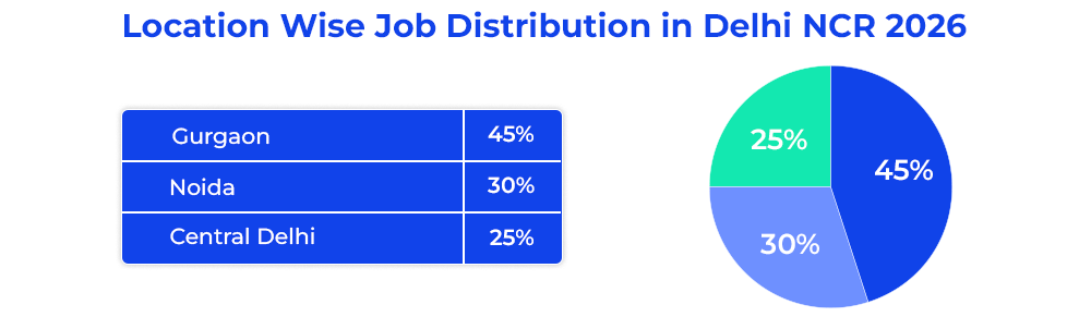 Even in 2026, Delhi NCR continues to be a leading employment hub which draws in job seekers from throughout India. The city maintains its uniqueness against Bangalore, Pune, and Mumbai because of its central location, which serves as the main site for emerging career paths and job market trends. Individuals get the benefit of enormous job volume, variety of industry choice for diverse working professionals, growth and high salary options.
