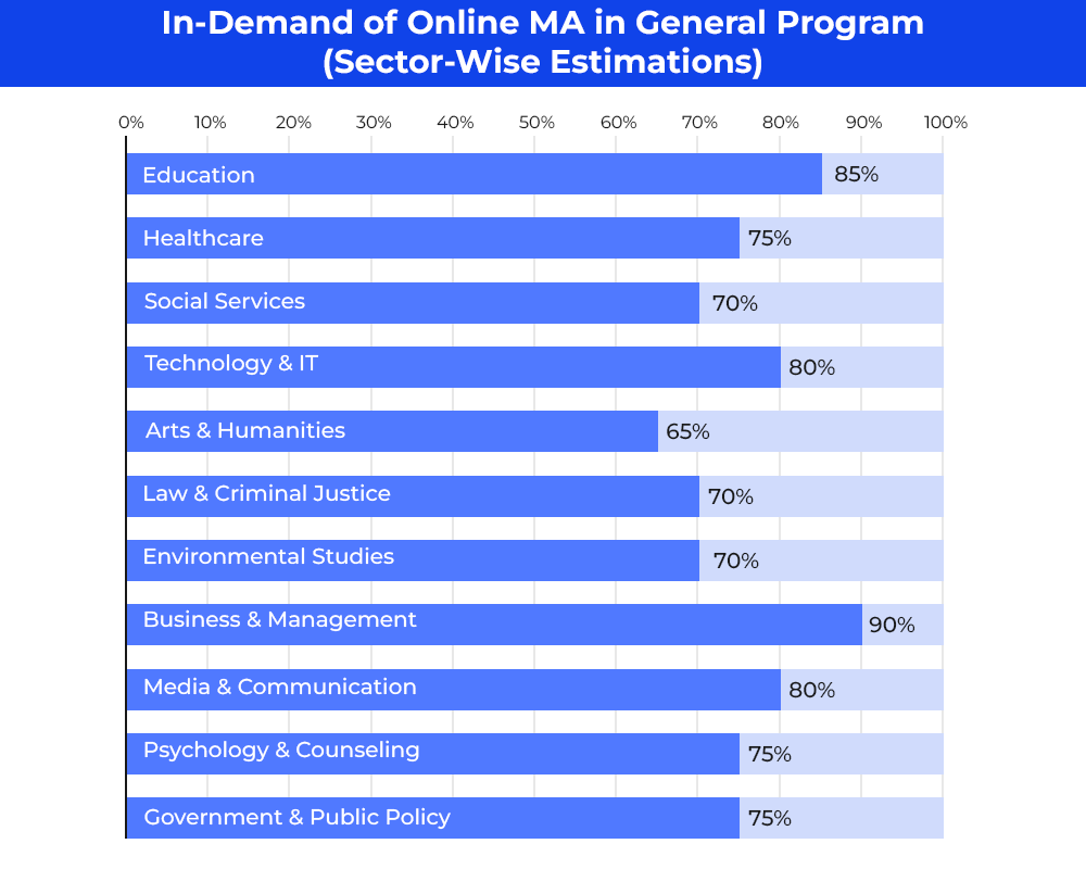 The online MA in general program is usually provided completely online and has been designed in such a manner that it fits the working schedules of the adult learners and working professionals, as well as those engaged in other engagements. They are also typically provided asynchronously, enabling students to learn lectures, take part in discussions, and do tasks at their own time. There might also be synchronous sessions or online office hours in some of the programs or interactive group projects to make students feel a sense of community. The online model means that the high-level education does not involve relocation and a career pause, which allows higher education to be more affordable and flexible to the modern lifestyle.