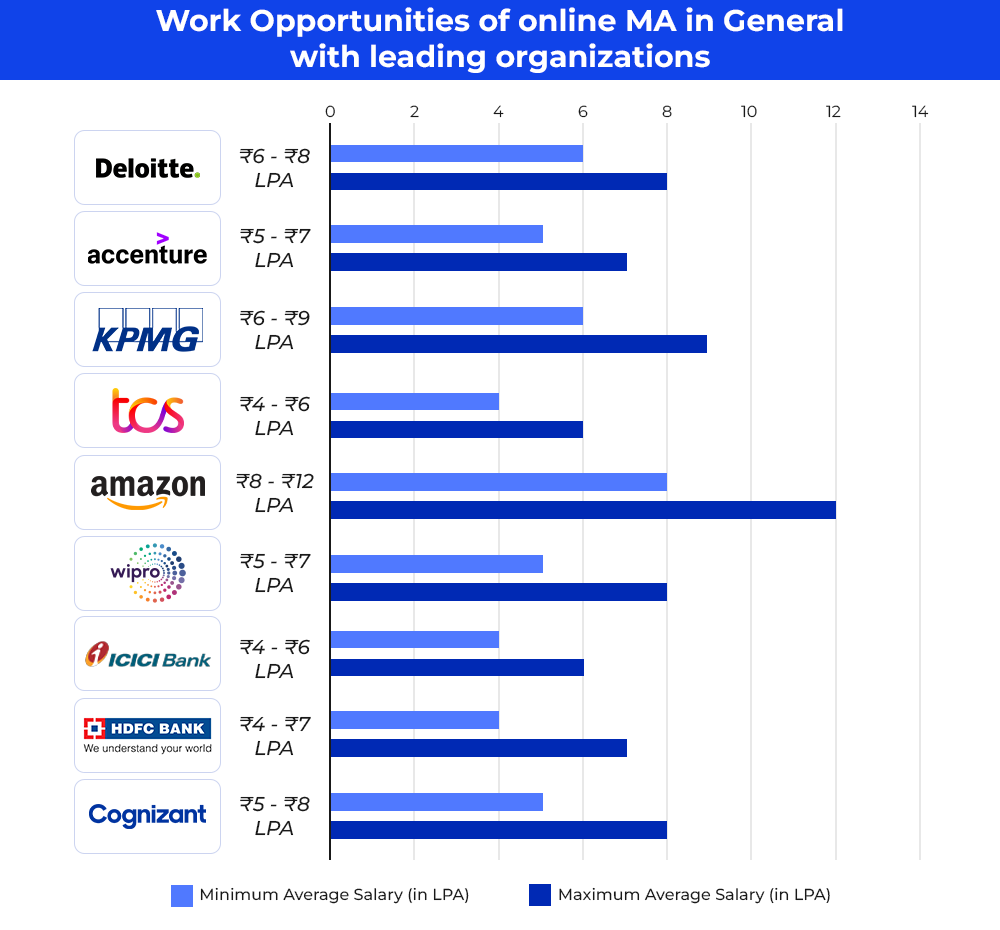 *The salary range of the job roles after an online MA in General program is taken from the Ambition Box or Glassdoor platforms.