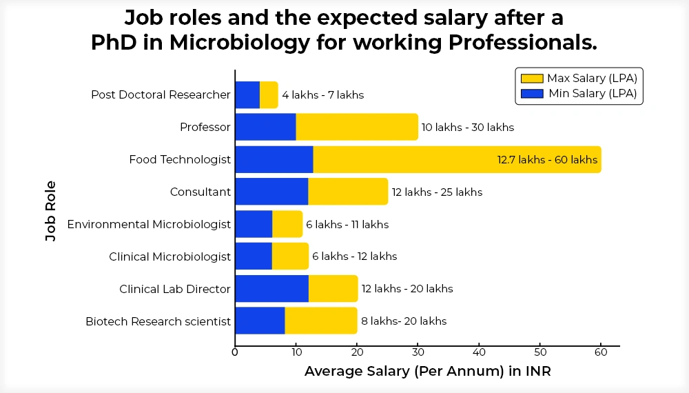 On completing the PhD in Microbiology, the working professionals program, the individuals will get to choose their career as a Clinical Microbiologist, Food Technologist, Consultant, Clinical Lab Director, or others.